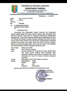 Informasi tersebut didapat awak media dari surat undangan yang beredar untuk PJ Sekretaris Daerah Way Kanan (PJ Sekda) Arie Anthony Thamrin.
