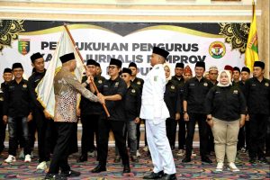 Gubernur Rahmat Mirzani Djausal mengukuhkan Pengurus Ikatan Jurnalis Pemprov (IJP) Lampung Periode 2025–2028, di Balai Keratun Lt. III, Kamis (19/6/2025).