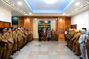 Wakil Gubernur Lampung, Jihan Nurlela melepas Ir. Emilia Kusumawati, M.M. yang telah memasuki masa purna bakti sebagai Kepala Dinas Lingkungan Hidup (DLH) Provinsi Lampung, di Ruang Abung Balai Keratun, Selasa (1/7/2025).