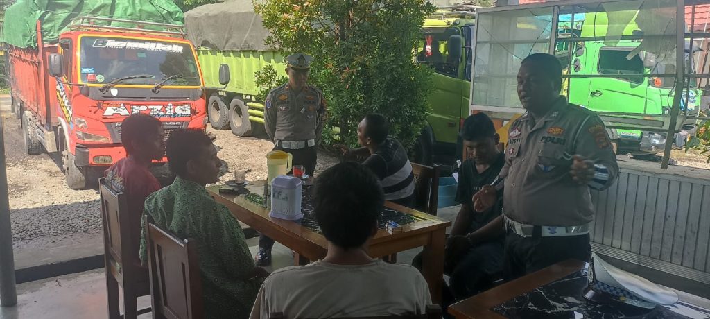 Satuan Lalu Lintas (Satlantas) Polres Way Kanan melakukan sosialisasi terkait truk Over Dimension dan Over Loading terhadap pengemudi kendaraan di RM. Beringin, RM ini berlokasi di Jalan Lintas Sumatera, Bumi Ratu, Kecamatan Umpu Semenguk. Rabu (09/07/2025).