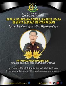Kepala Kejaksaan Negeri Lampung Utara, Hendra Syarbaini, S.H., M.H., beserta seluruh jajaran menyampaikan belasungkawa yang mendalam atas wafatnya:
