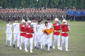 “Delapan dekade yang lalu, para pendiri bangsa dengan gagah berani memproklamasikan kemerdekaan. Hari ini tugas kita adalah melanjutkan perjuangan itu dengan kerja nyata,” ucap Gubernur.