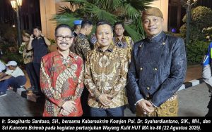 “Saya berterima kasih kepada Ki Prof. Dr. Yanto, SH., MH., yang selalu mengundang saya dalam banyak kegiatan pagelaran wayang yang didalanginya. Saya hadir bersama Bang Syamsul Bahri selaku Ketua Umum FORSIMEMA-RI dan Bro Vincent Suriadinata, SH., MH., yang merupakan mitra saya di kantor Hukum Mustika Raja Law Office. Kami memang diundang oleh beliau, termasuk saat beliau menjadi Dalang di Festival Mie Bakso dan Bazar UMKM di kota Semarang,” tambah Hoky.