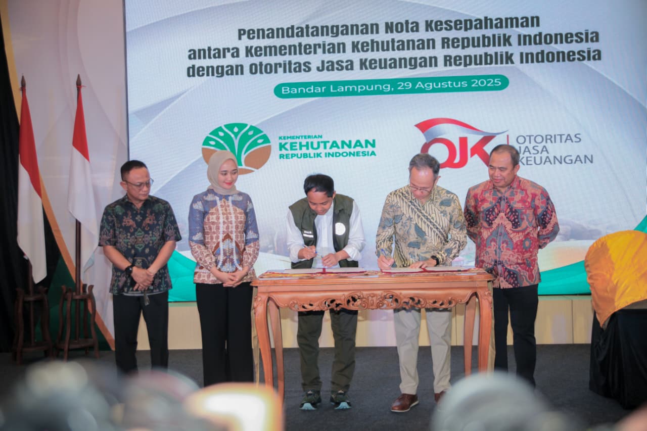 Dalam kesempatan tersebut juga dilakukan Penandatanganan Nota Kesepahaman antara kementerian Kehutanan Republik Indonesia dengan Otoritas Jasa Keuangan Republik Indonesia yang disaksikan langsung oleh Wakil Gubernur Lampung Jihan Nurlela.
