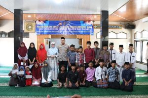 Polres Way Kanan menggelar doa bersama dan santunan anak yatim piatu, dalam rangka memperingati Maulid Nabi Muhammad SAW 1447 Hijriah yang bertempat di Masjid Darul Fattah Polres Way Kanan. Jum’at (05/09/2025).
