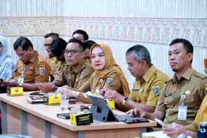Wakil Gubernur Lampung, Jihan Nurlela mengikuti Rapat Koordinasi Pengendalian Inflasi Daerah secara daring, di Ruang Command Center Lt. II Dinas Kominfotik Provinsi Lampung, Senin (8/9/2025).
