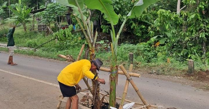 “Kami resah. Jalan makin parah, macet, dan rawan kecelakaan,” kata seorang warga yang bersama-sama penduduk lain memasang tanda peringatan bahaya di lokasi jalan amblas, Jumat (3/10).