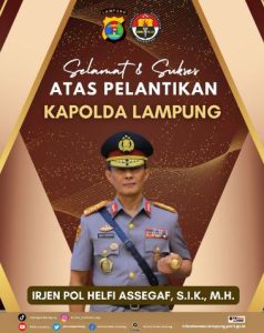DPD PPWI Provinsi Lampung menyampaikan ucapan selamat dan sukses kepada Inspektur Jenderal Polisi (Irjen Pol) Helfi Assegaf, S.I.K., M.K. atas amanah barunya sebagai Kepala Kepolisian Daerah (Kapolda) Lampung.