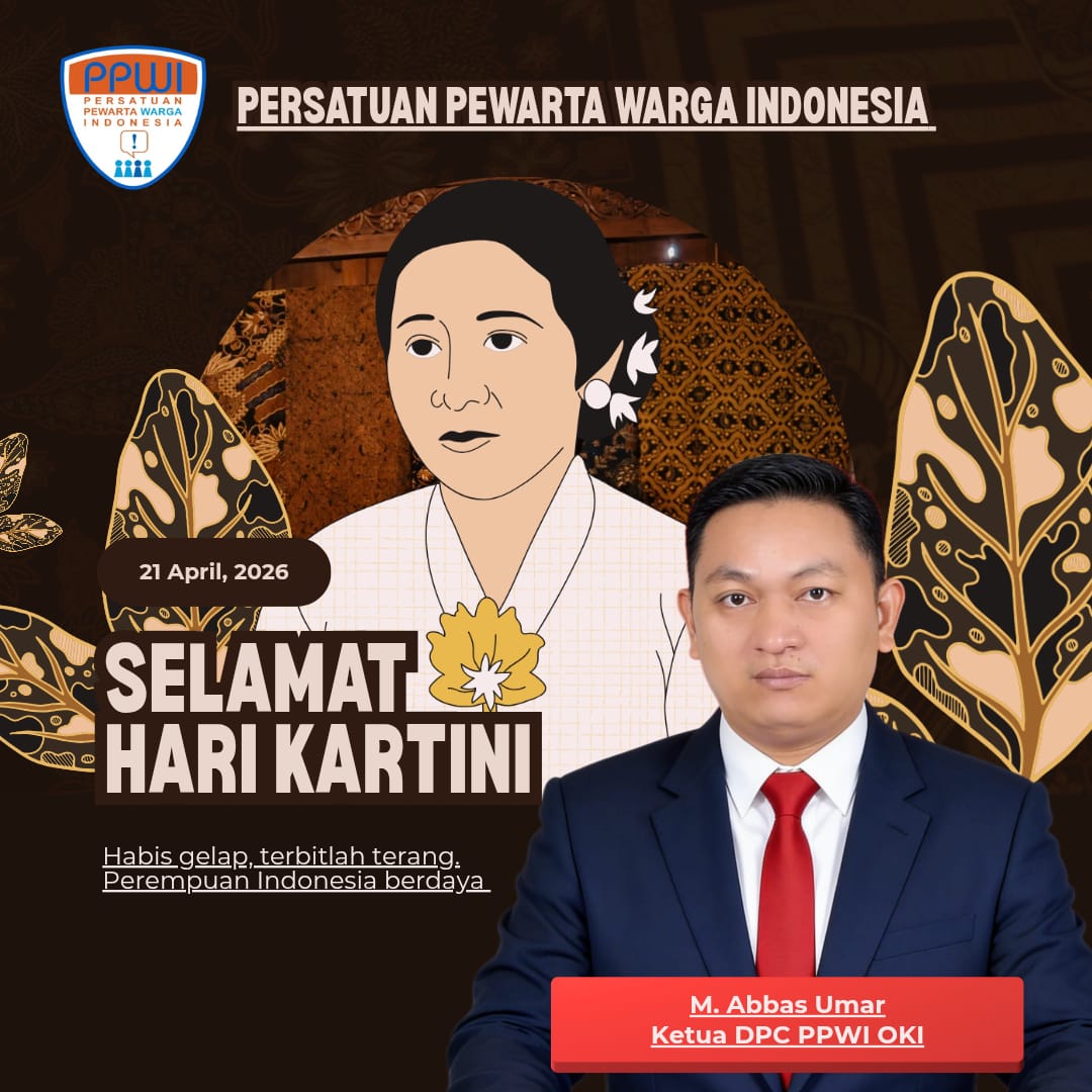 OKI – Ketua Dewan Pengurus Cabang (DPC) Persatuan Pewarta Warga Indonesia (PPWI) Kabupaten Ogan Komering Ilir (OKI), M. Abbas Umar, beserta seluruh pengurus dan anggota PPWI OKI mengucapkan selamat memperingati Hari Kartini yang jatuh pada hari Selasa, 21 April 2026.