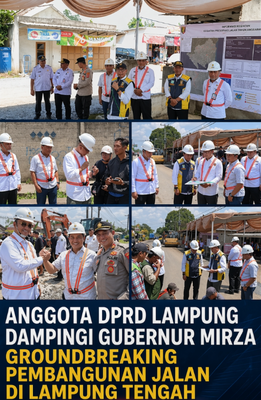 Anggota DPRD Provinsi Lampung, Abdullah Surajaya, mendampingi Gubernur Lampung, Rahmat Mirzani Djausal, dalam kegiatan groundbreaking pembangunan ruas jalan di Kabupaten Lampung Tengah.