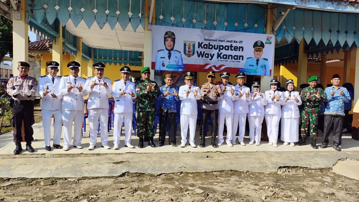 Way Kanan, – Pemerintah Kecamatan Baradatu, Kabupaten Way Kanan menggelar upacara bersama dalam rangka memperingati Hari Jadi Kabupaten Way Kanan Ke- 27 tahun yang bertemakan “SINKRONISASI & KOLABORASI PEMBANGUNAN” yang digelar di halaman di Kantor kecamatan Baradatu, Senin (27/04/2026)