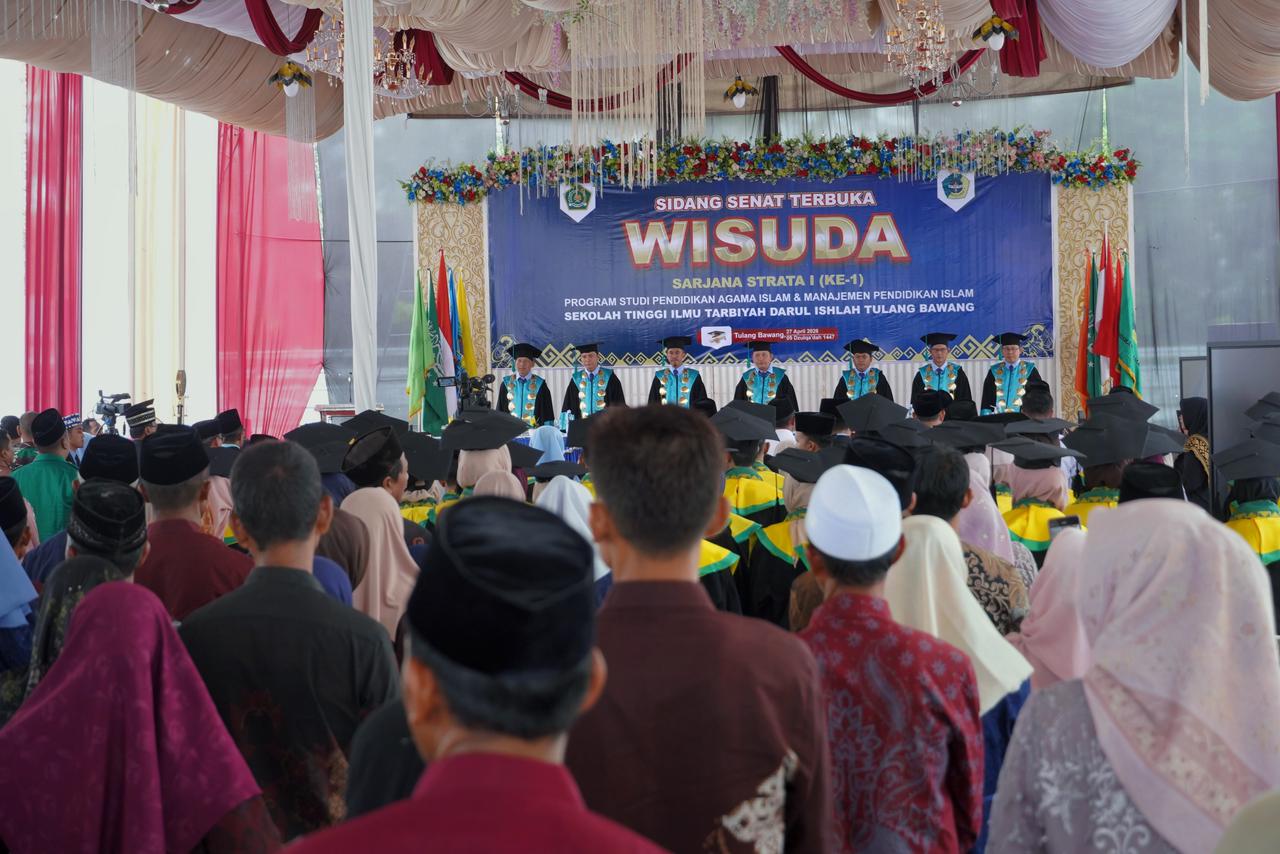 Wisuda perdana tersebut menjadi tonggak sejarah penting bagi STIT Darul Ishlah Tulang Bawang dalam mencetak generasi unggul, religius, dan siap membangun Lampung. (Dinas Kominfotik Provinsi Lampung).