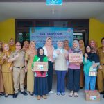 Bandar Lampung Ketua Tim Pembina Posyandu Provinsi Lampung, Purnama Wulan Sari Mirza, menyerahkan bantuan susu kepada masyarakat sekitar Kantor Gubernur
