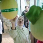 Lampung Selatan Ketua Tim Penggerak PKK Provinsi Lampung, Purnama Wulan Sari Mirza, memimpin kegiatan panen buah melon, anggur dan sayur
