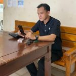 TANGGAMUS Kepala Pekon/desa (Kakon) Air Abang, Kecamatan Ulubelu, Kabupaten Tanggamus, Agustrioko menampakkan wajah lugu didepan Bupati Tanggamus saat kegiatan Peletakan